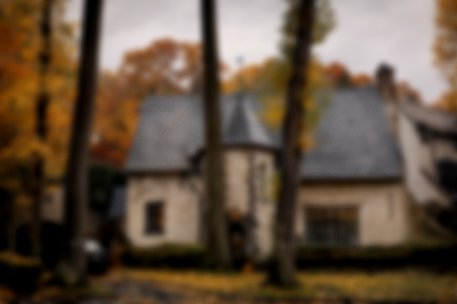 4538 Greystone Avenue is a highly picturesque residence designed to evoke a Cotswold cottage from the English countryside. Its composition is intentionally informal and richly textured, defined by rough stucco walls, irregularly shaped and steeply pitched slate roofs, and a distinctive turreted tower capped with a conical roof. The overall effect is one of warmth and permanence, with an emphasis on craft and silhouette rather than symmetry.